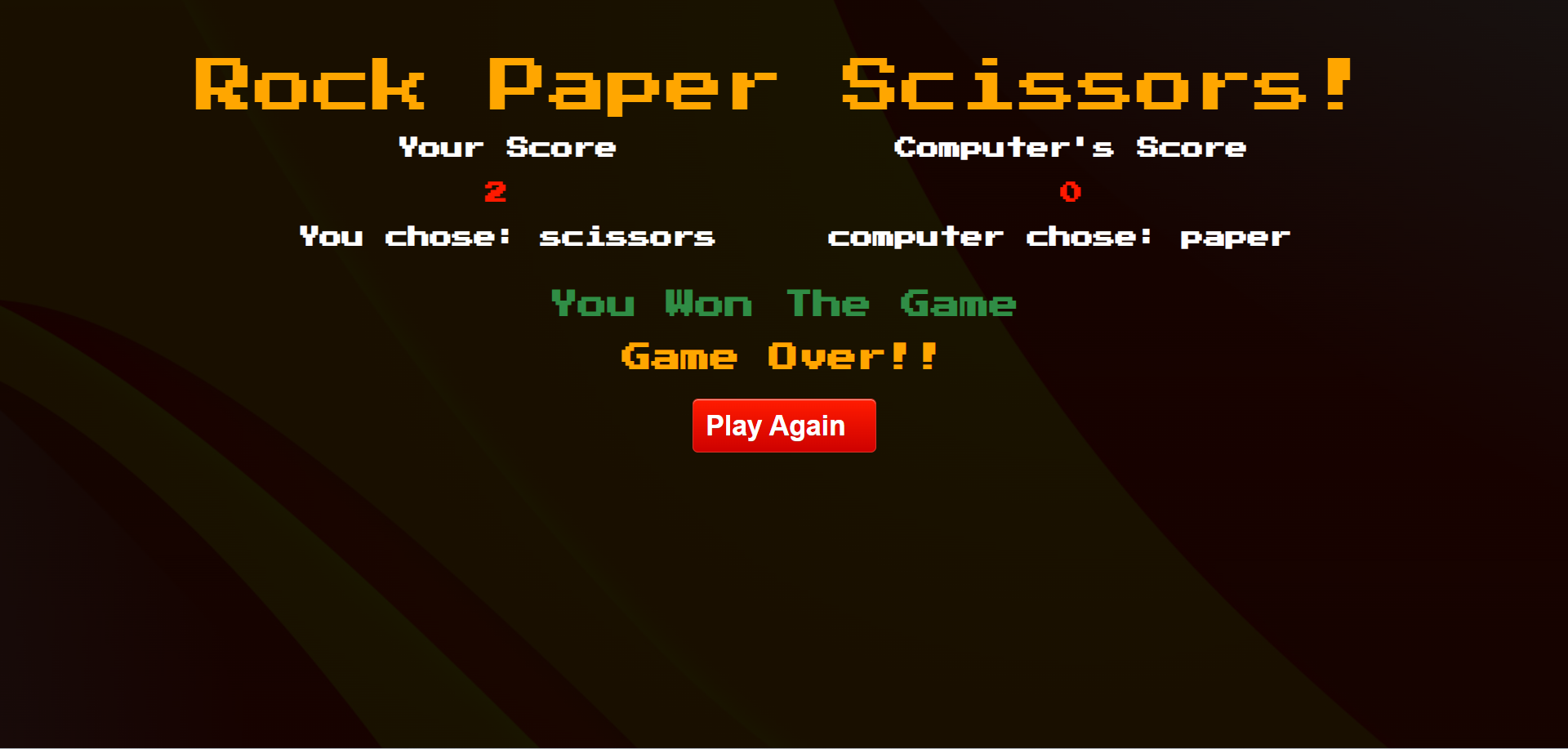- Outcome: Following each round, the app displays the game number, announces the winner, and provides a score update for both the player and the computer. This way, the user can keep track of the progress.